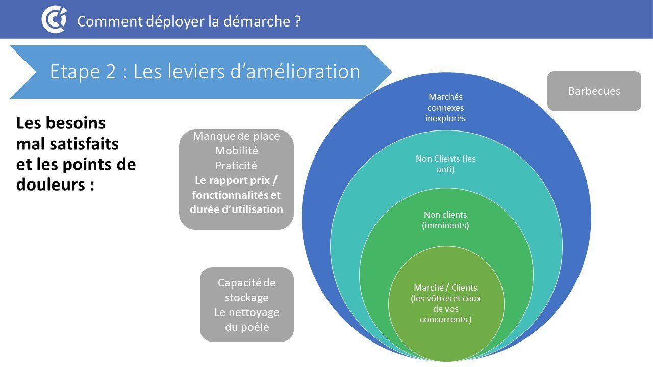 - Retro concevoir le produit/service existant : optimiser les fonctionnalités qui répondent le mieux aux attentes des clients et permettent de se démarquer de la concurrence (supprimer les fonctionnalités qui ont peu de valeur ajoutée, renforcer d'autres fonctionnalités qui sont importantes aux yeux des clients ...)