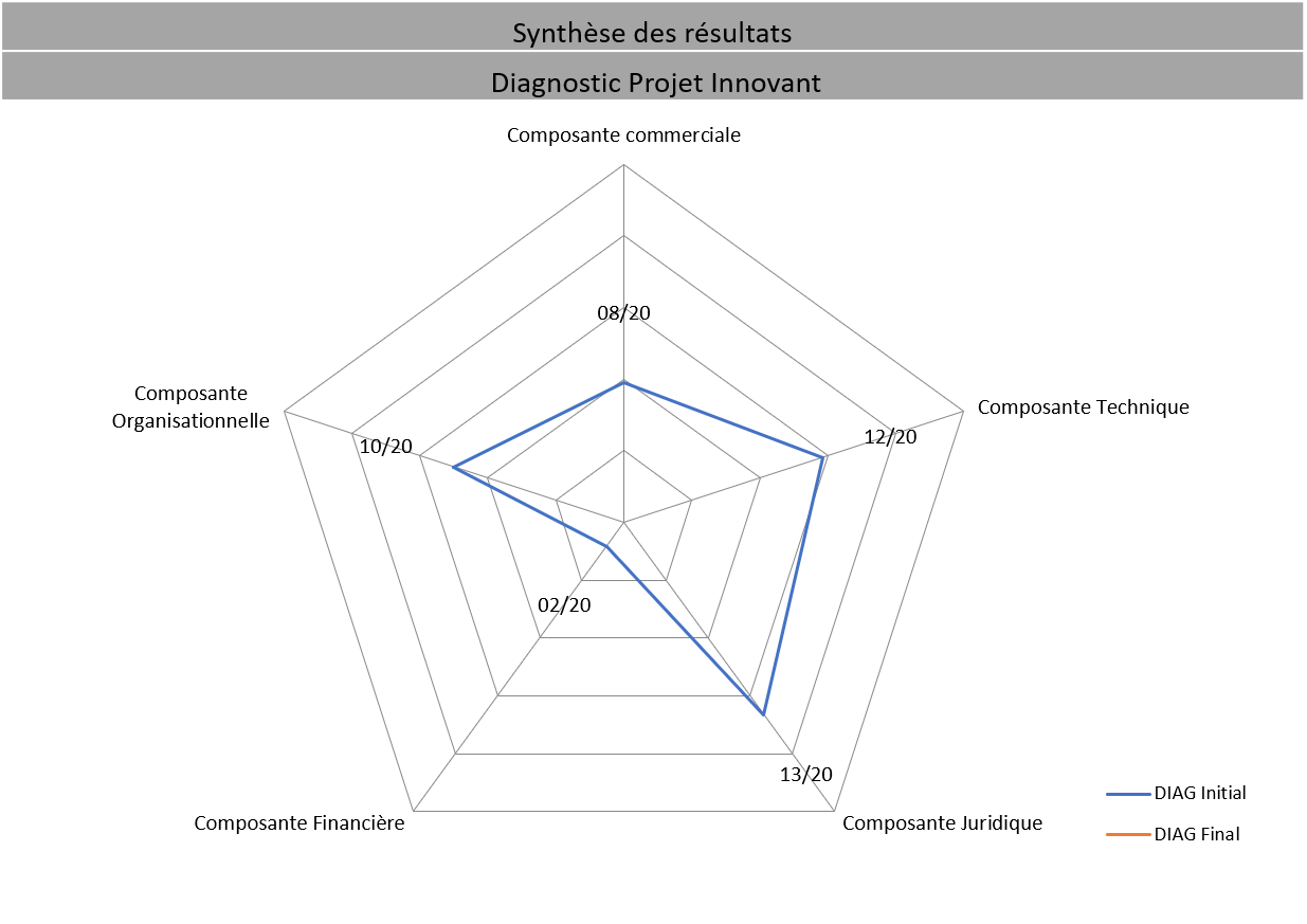 - Etape 2 : étude de faisabilité du projet dans ses composantes techniques, commerciales, juridiques, financières et organisationnelles. L’utilisation d’un outil de diagnostic permet d’identifier les composantes du projet à travailler.